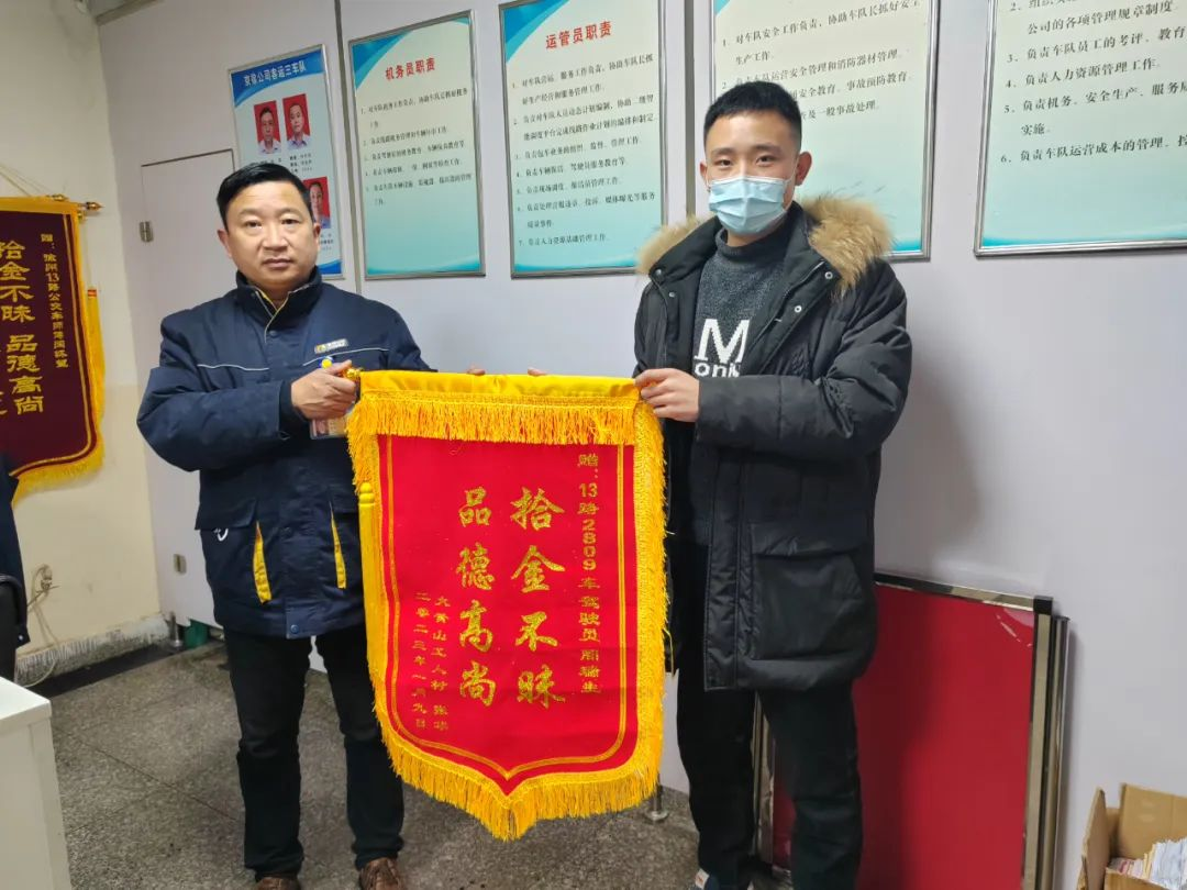 原來(lái),在1月9日上午11時(shí)許,13路駕駛員周瑞生在終點(diǎn)站打掃車(chē)輛衛(wèi)生時(shí),發(fā)現(xiàn)座位上有一個(gè)黑色雙肩包。經(jīng)檢查,包內(nèi)有現(xiàn)金3000余元、數(shù)張銀行卡以及醫(yī)院報(bào)告單。周瑞生立即將包交到車(chē)隊(duì),與車(chē)隊(duì)長(zhǎng)通過(guò)多種途徑,終于聯(lián)系到了失主張先生。當(dāng)日下午1時(shí)左右,失主張先生急切地趕到了車(chē)隊(duì)。經(jīng)了解,張先生乘坐13路公交車(chē)去兒童醫(yī)院給孩子交住院費(fèi),情急之下把包遺忘在了車(chē)上,正在一籌莫展之時(shí),接到了我們的電話(huà)。拿回失物的張先生激動(dòng)之情溢于言表,隨即激動(dòng)地拿出現(xiàn)金要表示感謝,被周瑞生婉言謝絕,他表示:“拾金不昧是我們中華民族的傳統(tǒng)美德,我身為一名公交人,更是一名光榮的五星級(jí)駕駛員,這是我應(yīng)該做的。”事后,失主張先生又特意送來(lái)了錦旗以示感謝。