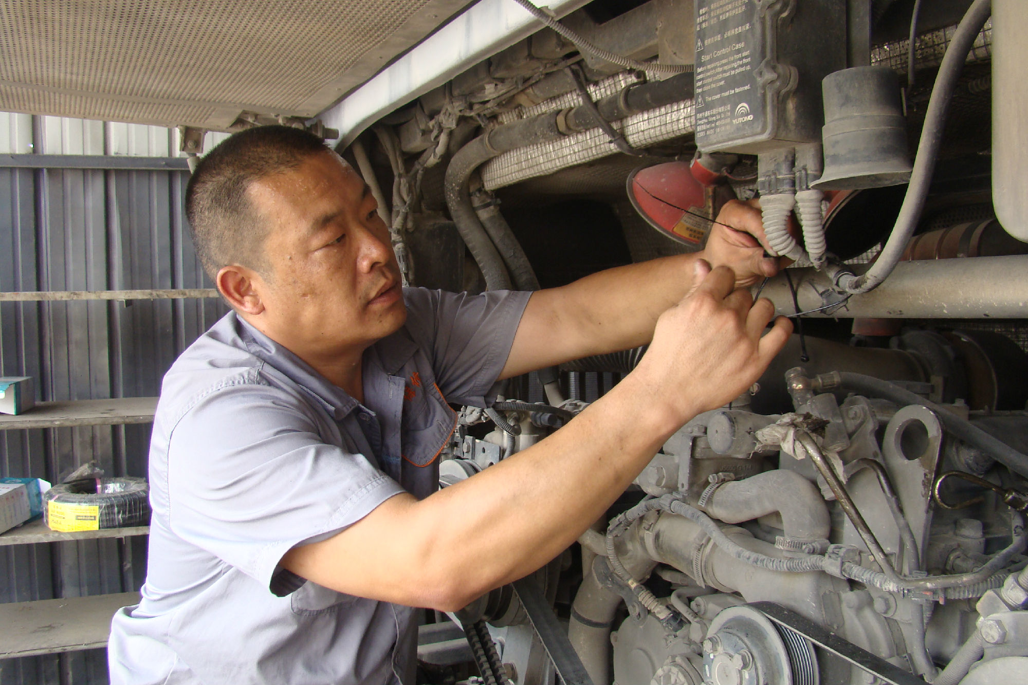 有這樣一群人,他們的雙手總是沾滿油污、他們的衣服總是被汗水浸濕,他們整天蹲在地溝里、躺在汽車下。腿麻了、脖子硬了,腰酸了,他們沒有一句怨言。他們就是默默奉獻(xiàn)、任勞任怨的修理工——公交車的白衣天使。宋鵬飛就是他們中的一員。