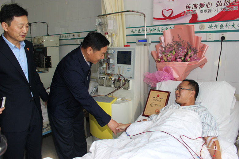 自7月底接到通知的這段時(shí)間,鄭剛一直積極配合著,希望保持最佳的身體狀態(tài)進(jìn)行捐獻(xiàn)。他努力克制自己,戒煙戒酒,鍛煉身體,增加高營養(yǎng)的飲食調(diào)理。喝不慣牛奶的他甚至強(qiáng)迫著自己一天喝兩包奶。國慶節(jié)幾天,他突然感冒發(fā)低熱,竟忍著沒敢吃藥……鄭剛所在的單位也給予了大力的支持和配合,10月25日入院,徐州公交為他舉辦了隆重的歡送儀式,董事長(zhǎng)、總經(jīng)理杜紅軍等領(lǐng)導(dǎo)給他送來了慰問金,安排好他的休息時(shí)間。