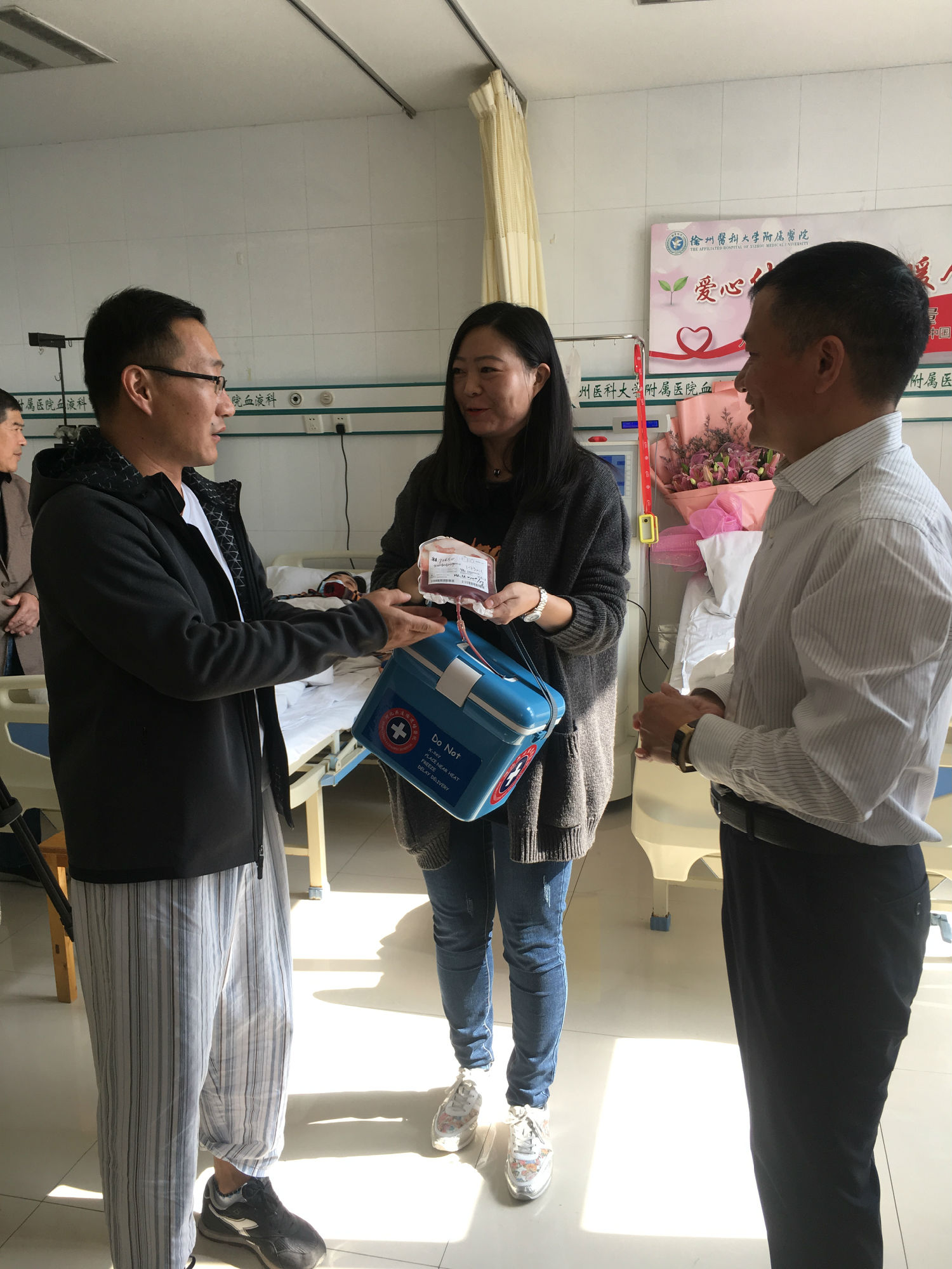 打過8針造血干細(xì)胞動(dòng)員劑,10月30日上午開始采集?!袄习?,加油!”兒子在病床前給鄭剛鼓勁兒,雖然經(jīng)過了幾天動(dòng)員針的不適反應(yīng),此時(shí)鄭剛依舊很堅(jiān)定:“我比別人的打針反應(yīng)大,只要能救人一命,這都不算啥,我現(xiàn)在就希望孩子能盡快康復(fù)?!毙熘菔屑t十字會(huì)副會(huì)長(zhǎng)李永衛(wèi)為鄭剛頒發(fā)了“捐獻(xiàn)造血干細(xì)胞榮譽(yù)證書”,為他點(diǎn)贊:“你是英雄!”患者家人在感謝信中寫道:“您這種高尚的壯舉給了我們?nèi)疑畹南M!?/span>