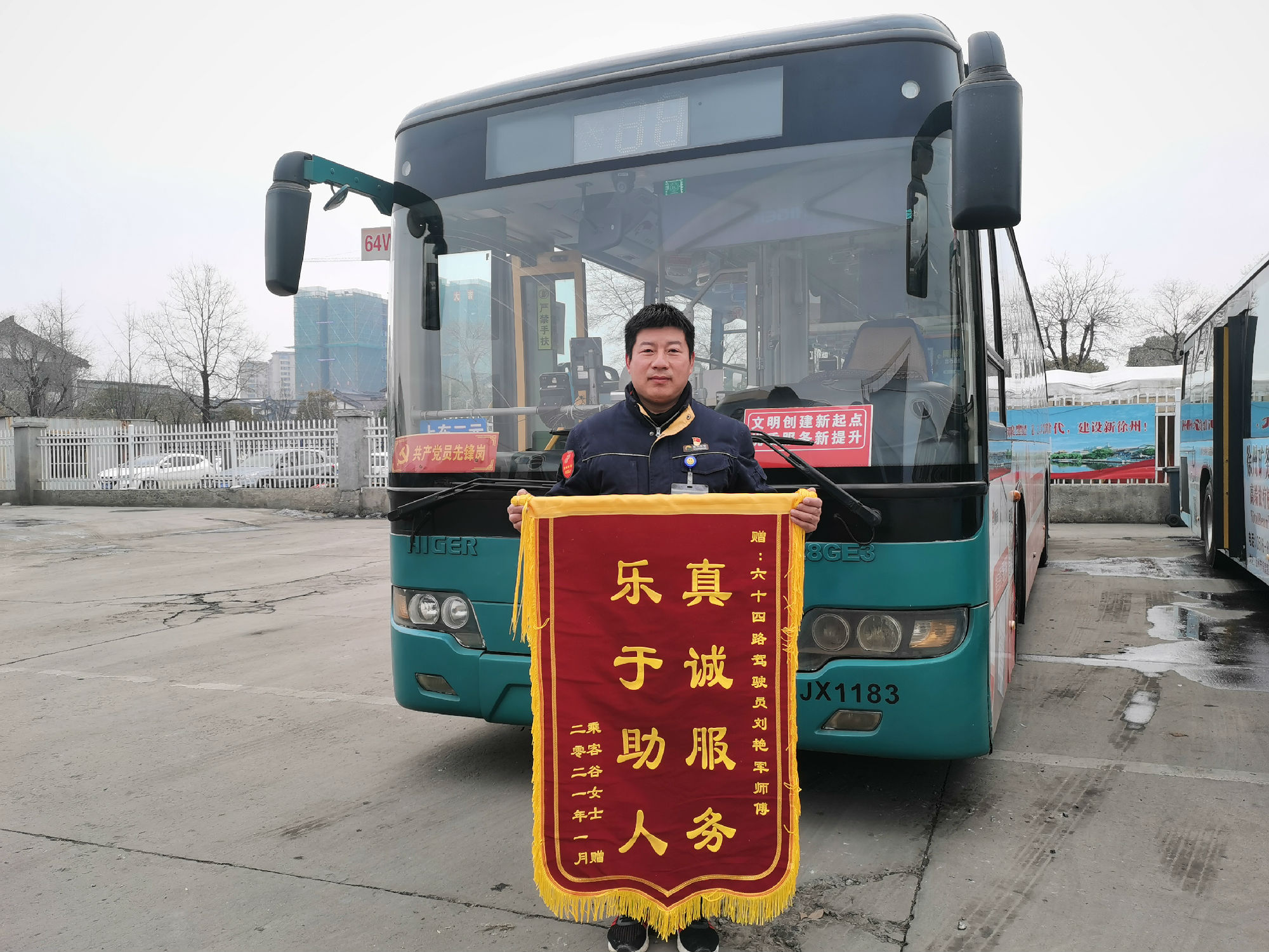 原來,2020年12月24日傍晚,老人在淮塔北門公交站候車時,由于天氣嚴寒加之著急趕車,老人血壓升高,不慎跌倒在站臺,無法起身。就在此時,劉艷軍駕駛64路1183號公交車駛?cè)胝九_,發(fā)現(xiàn)老人跌倒,劉艷軍立即將車安全停好,與乘客解釋后立即跑下車,小心翼翼地將老人扶起,幫老人拍打身上的灰塵,細心地詢問老人身體狀況,確定老人沒事后,劉艷軍懸著的心才放下。在得知老人想乘坐64路公交車后,劉艷軍又慢慢地將老人扶上了車,給老人安排好座位后,劉艷軍再次確定老人身體無恙后,才安心駕車繼續(xù)前行,車上乘客紛紛投來贊許的目光。