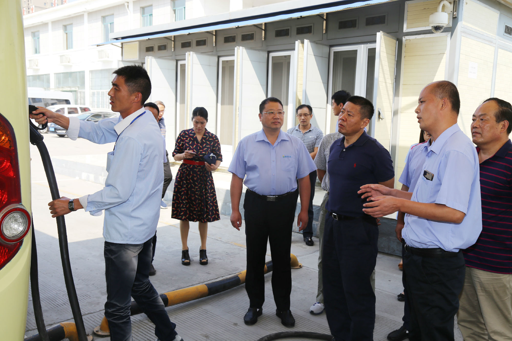 公司副總經(jīng)理丁玉華、機(jī)務(wù)部部長(zhǎng)宋良豐為市人大領(lǐng)導(dǎo)介紹了充電站的運(yùn)營(yíng)生產(chǎn)情況,講解當(dāng)前環(huán)境下新能源純電動(dòng)汽車(chē)節(jié)能減耗的成效;充電站技術(shù)人員對(duì)充電樁后臺(tái)監(jiān)控系統(tǒng),包括電流、電壓、充電時(shí)間、費(fèi)用及充電電池需求等數(shù)據(jù)逐一進(jìn)行講解。隨后,束志明一行又對(duì)場(chǎng)站內(nèi)充電樁、高壓充電設(shè)備和后方監(jiān)控系統(tǒng)進(jìn)行了查看,對(duì)公司新能源發(fā)展做出指導(dǎo)并提出建設(shè)性意見(jiàn)。