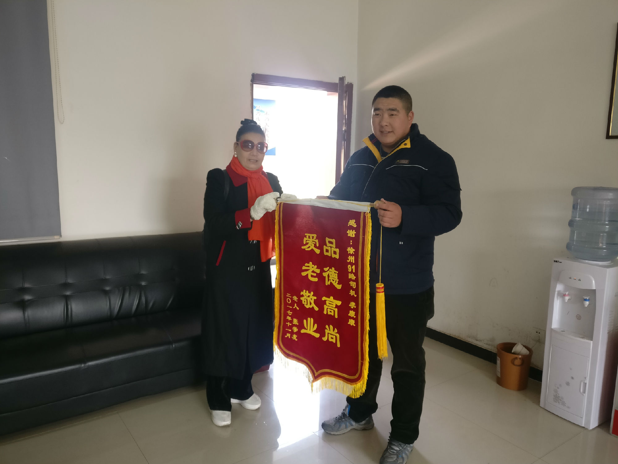 11月21日,李康康正執(zhí)行末班車的任務(wù),夜晚寒冷,車上乘客也比較少。即將到達終點站時,車上僅剩一位年近70的張女士,李康康看她神情慌張地看著窗外。經(jīng)詢問,得知張女士剛搬到新城區(qū)住不久,迷路了??紤]到張女士年齡較大,于是就把想送張女士回家的想法向線路長及公司做出了匯報。經(jīng)批準后,他開車將張女士送回了家。事后,張女士為了表達謝意,給李康康送來一面錦旗。