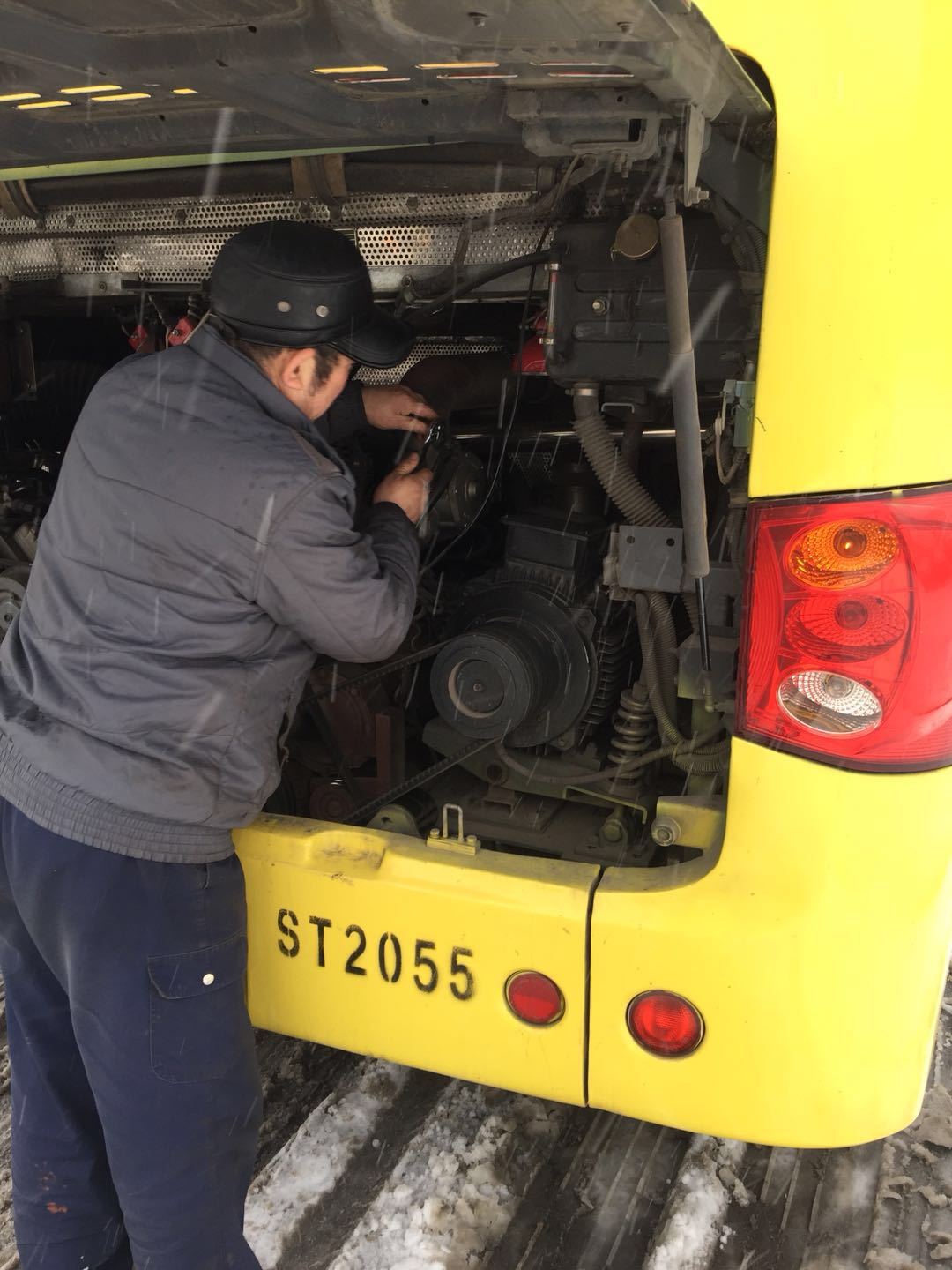 為保證冰雪嚴(yán)寒天氣公交車運(yùn)力正常,公司提前對2300余輛公交車進(jìn)行了安全性能的全面普查及換季保養(yǎng)作業(yè)項目,進(jìn)一步加強(qiáng)車輛的日常維護(hù)及“三檢”,嚴(yán)格執(zhí)行維保規(guī)范,確保車輛設(shè)備的防凍液冰點(diǎn)值不低于-15℃,并提前更換了-10號柴油,防止燃?xì)廛囕v冰堵。修理人員冒著風(fēng)雪,手凍得通紅仍堅持在現(xiàn)場搶修車輛;智能調(diào)度平臺利用3G視頻實時監(jiān)控線路運(yùn)營情況,利用車載語音不斷播放安全提示,做好雪天行車安排;公交出租450輛出租車全部出車……4日晚,市區(qū)雪深已達(dá)375px,氣溫-7℃。大雪造成高鐵晚點(diǎn)6小時,10路線立即增派7輛加班車增加24個班次,直至5日凌晨4:07最后一班車發(fā)車,堅決不滯留一名乘客,全力保障了雪天市民的安全出行。