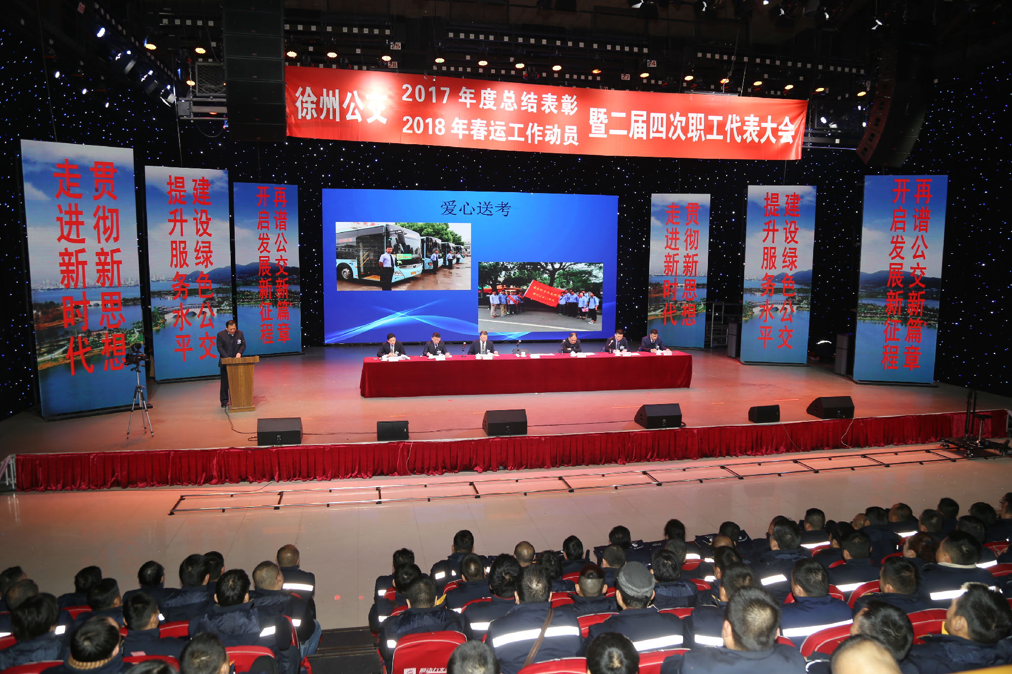 大會(huì)在莊嚴(yán)的國(guó)歌聲中拉開(kāi)序幕。公司董事長(zhǎng)、總經(jīng)理杜紅軍首先作經(jīng)理工作報(bào)告,對(duì)2017年“改革創(chuàng)新年”工作進(jìn)行了全面總結(jié):一、實(shí)施“同城同價(jià)”,優(yōu)化運(yùn)營(yíng)管理,實(shí)現(xiàn)服務(wù)水平新突破。連續(xù)第五年面向全市征集線路線網(wǎng)優(yōu)化意見(jiàn)近3000條,據(jù)此新辟優(yōu)化線路29條。二、深化資源共享,在互聯(lián)網(wǎng)+企業(yè)管理上譜寫(xiě)新藍(lán)圖。繼續(xù)深化集中維修,推行集中例檢。論證實(shí)施支付寶、微信、銀行卡閃付等智能化移動(dòng)支付方式。三、深化文明創(chuàng)建,打造優(yōu)秀公交,服務(wù)民生出行贏得新口碑。在國(guó)檢、省檢中未失一分,圓滿完成創(chuàng)建驗(yàn)收任務(wù)。投訴總數(shù)和有責(zé)投訴同比實(shí)現(xiàn)“雙下降”。乘客表?yè)P(yáng)同比上升近20%。公司在2016年行風(fēng)熱線上線單位滿意度評(píng)議投票中名列榜首。率先打造公交行業(yè)禮讓斑馬線嶄新形象,圓滿完成公交反恐防暴工作。四、著力綜合管理,聚合內(nèi)生動(dòng)能,增強(qiáng)企業(yè)發(fā)展新優(yōu)勢(shì)。重新修訂2012版管理制度匯編和新版《徐州公交獎(jiǎng)懲條例》。五、踐行十九大精神,推進(jìn)和諧發(fā)展,開(kāi)創(chuàng)黨群工作新面貌。接著,杜總分析了工作中存在的問(wèn)題,提出下步工作重點(diǎn)。一、建設(shè)現(xiàn)代化公交,提升經(jīng)營(yíng)管理水平,保障企業(yè)良性有序運(yùn)行;二、踐行集約共享理念,深化科技應(yīng)用,開(kāi)創(chuàng)公交事業(yè)發(fā)展新局面;三、建設(shè)平安公交,提升服務(wù)口碑,展示文明公交新形象;四、踐行十九大精神,構(gòu)建和諧公交,開(kāi)啟黨群工作新面貌。