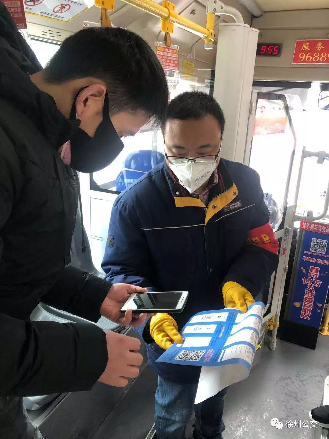 2月12日早上5點,各級管理人員分組到達各始發(fā)站進行早發(fā)車,測量復(fù)工人員體溫,車輛消毒,叮囑駕駛員嚴格按照集團要求行駛,注意行車安全,并跟隨首班車,查看線路營運情況。發(fā)車前,駕駛員佩戴好口罩、護目鏡,對車輛進行消毒,重點對踏板、地板、拉手、投幣口進行全覆蓋消殺,并打開車門、車窗進行通風換氣,跟車人員準備好體溫劑,做好乘客的體溫測試工作。在高鐵上客站、淮西客運站、徐州站等地,管理人員協(xié)助駕駛員監(jiān)督乘客是否佩戴口罩,進行體溫測試;引導市民掃碼乘車進行實名登記;主動宣傳禁止攜帶易燃易爆物品以及活禽上車;疏導乘客“錯位就坐”,叮囑乘客保持安全乘車距離。運營期間,所以公交車全程打開車窗和頂部天窗,每臺車的前車門處標注滿載率,滿員以后不再接納新乘客上車,并嚴格執(zhí)行“一趟一清掃”“一趟一消毒”制度,做好消毒記錄,做到規(guī)范防控。